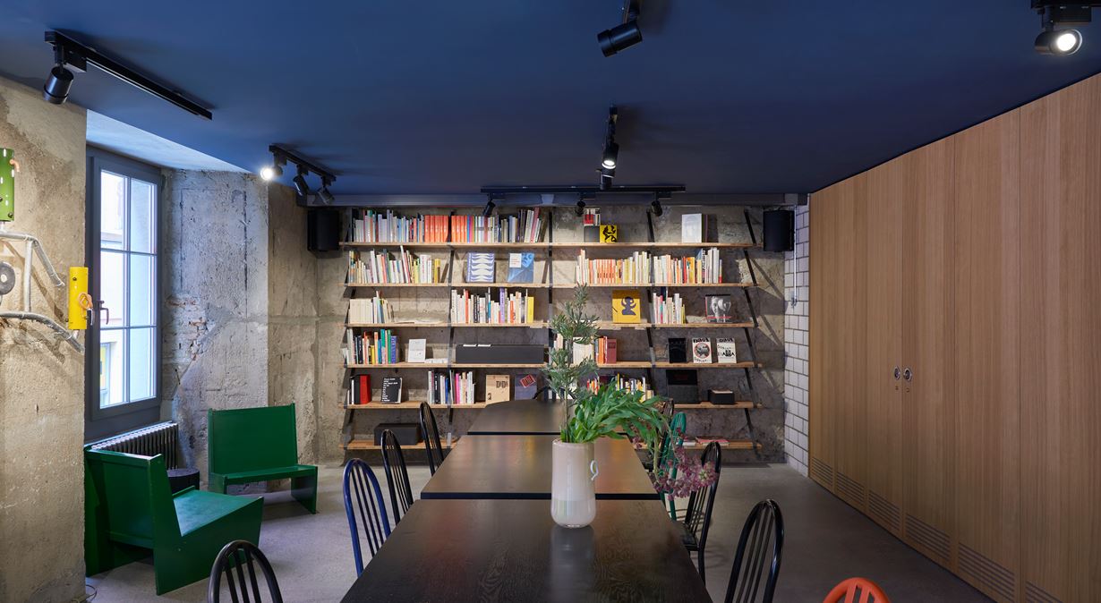 In addition to the Historical Hall with bar, there is an Artists› Bar in the entrance area, which is occupied by an artistic position for one year at a time. On the second floor of the Cabaret Voltaire is the Dada Library, which includes important Dada publications and can be used as a workplace during the day.