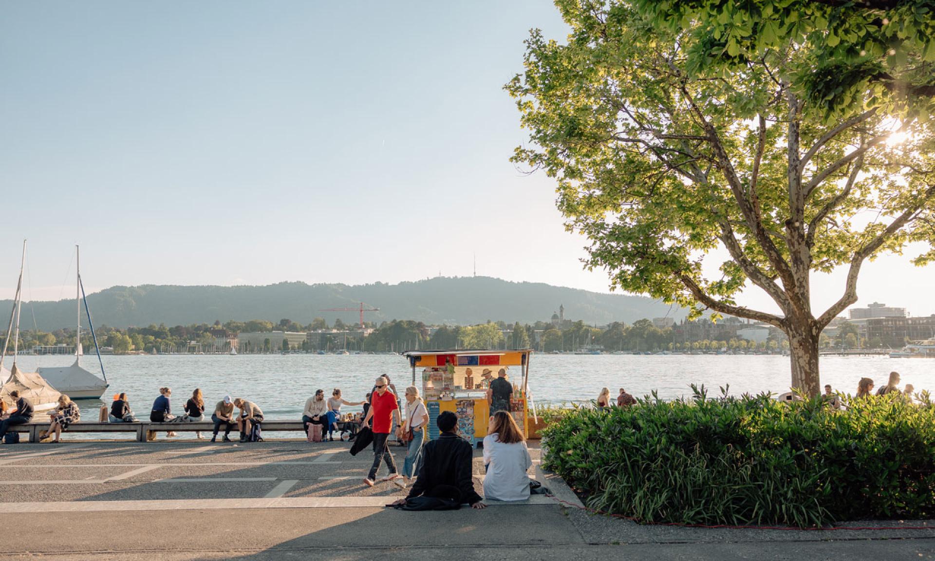 Als das «Promenieren» (Spazierengehen) in Zürich um 1800 Mode wurde, entstand um das untere Seebecken des Zürichsees die damals grösste zusammenhängende Grünanlage und Zürich wandelte sich von der Kleinstadt am Fluss zur Grossstadt am See. Die Seepromenade diente einem breiten Publikum als Erholungsraum – bis heute hat sich daran nichts geändert. In den Quaianlagen treffen sich Inline-Skater:innen, Baderatten, Schmuckverkäufer:innen und Strassenkünstler:innen zu einem kunterbunten Stelldichein.